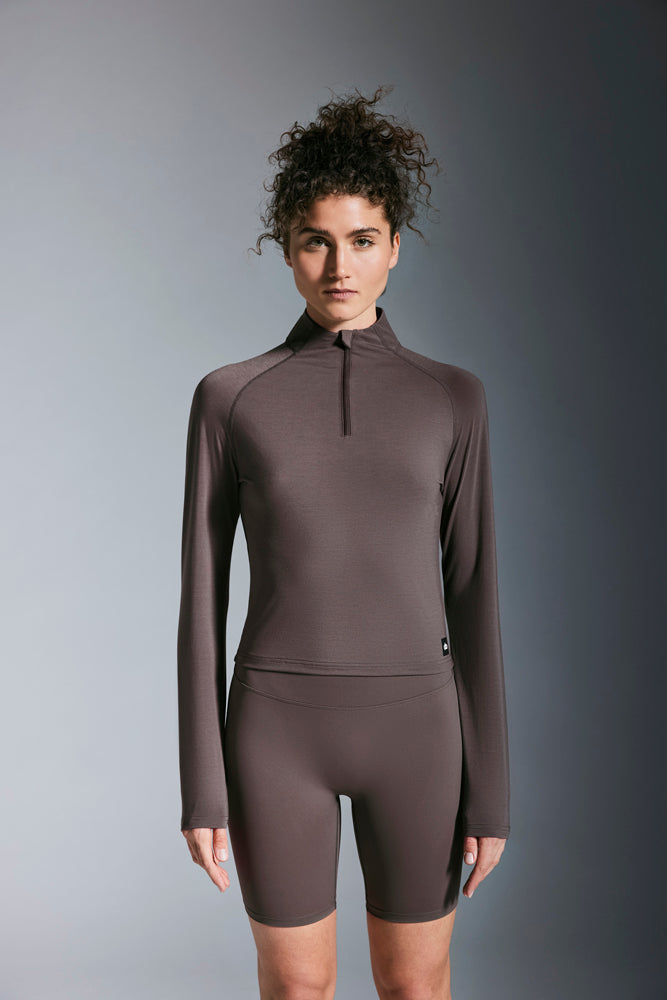 Womens Cropped Quarter Zip, featuring a versatile, cropped, slim fit design. The buttery soft, insulating material helps keep you warm while maintaining breathability, making it ideal for layering or wearing on its own. Ideal for running, training or casual wear, this quarter zip delivers the perfect balance. Made from recycled material.